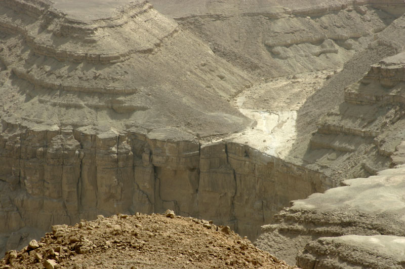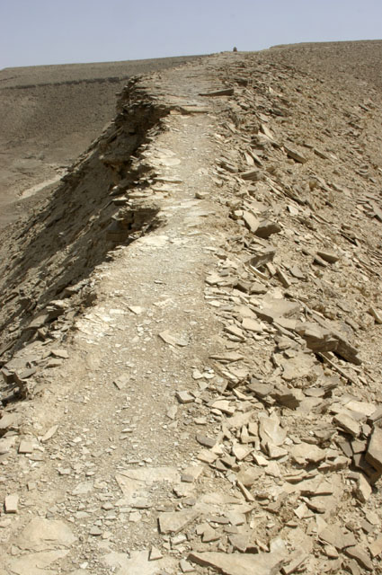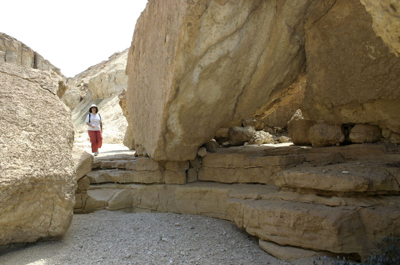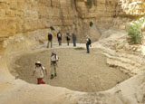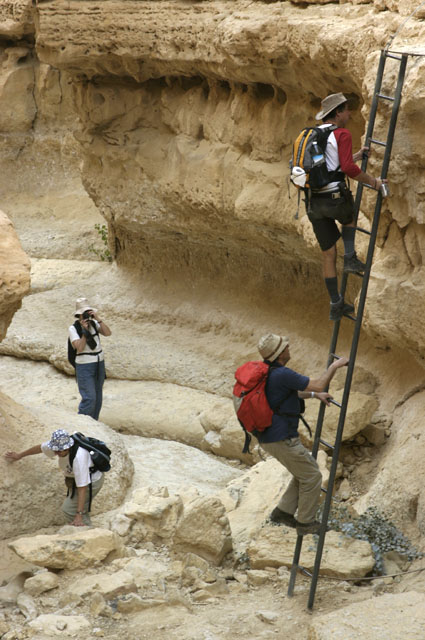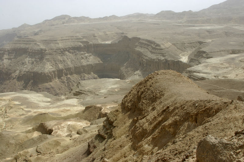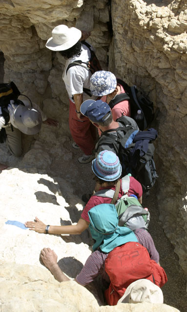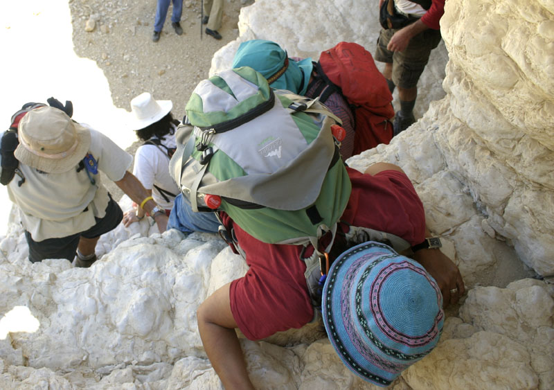 נחל עתק ומשם עליה לעבר שפת מכתש תמנע. עקיפה של המכתש ממערב ותצפית משפת