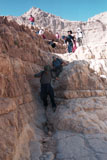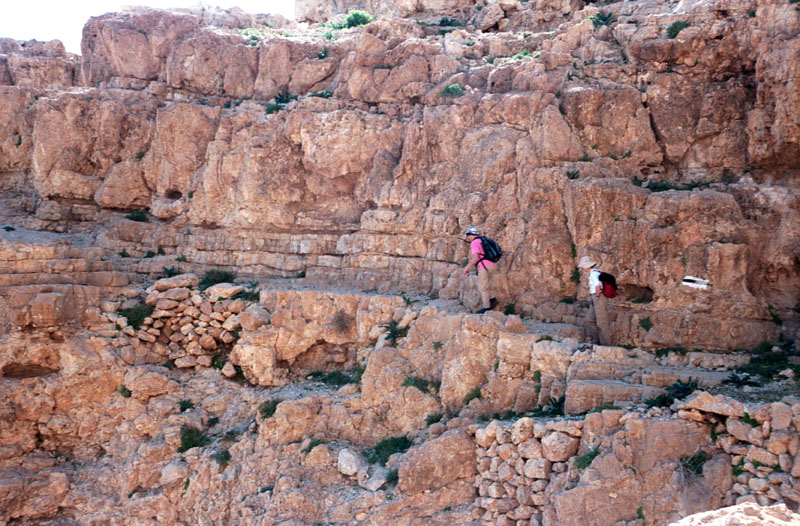 טיפוס לאוכף המפריד את נחל דויד, ומשם טיפוס בעקלתון בערוץ ואדי עד למצוק ההעתקים.