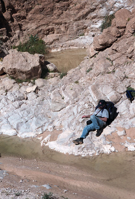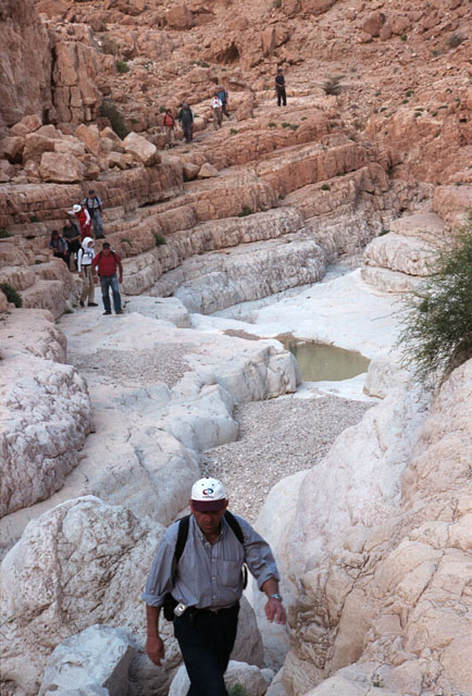 היבש בנחל דויד. כאן התפצלנו למטיבי הלכת ומטיבי הנחת, והראשונים ירדו במורד הערוץ,
