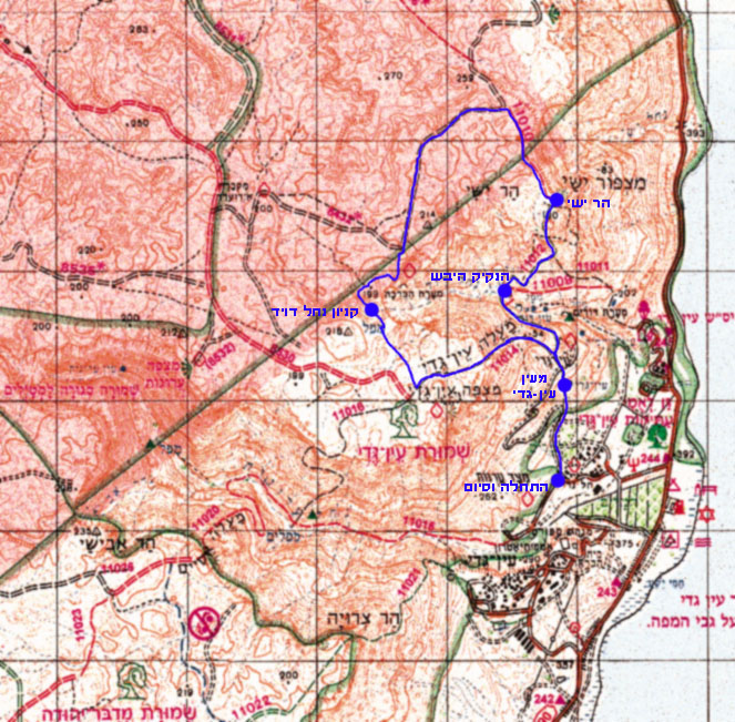 לתצפית הר ישי. מבט מדהים לאזור עין-גדי וארוחת צהריים. ירידה בשביל המסומן לקניון