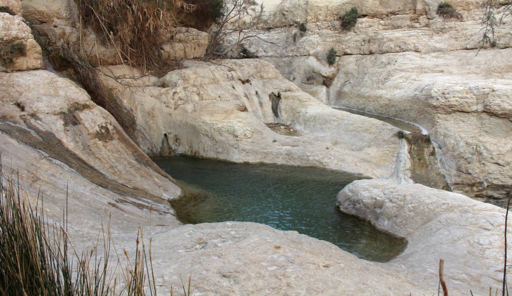 יום א - עין גדי: בי"ס שדה, שביל צפית, הקניון היבש, המקדש הכלכוליתי, מפל דויד